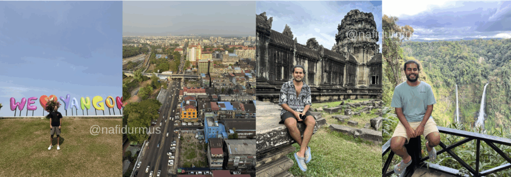 Tek başıma çıktığım Myanmar, Laos ve Kamboçya gezilerinden çok şey öğrendim. Kimsenin gitme dediği Myanmar, Laos’ta tırmandığım manzara noktaları ve gördüğüm doğal güzellikler unutulmazdı. Kamboçya’da ziyaret ettiğim Angkor Vat tarih açısından ve ziyaret ettiğim Ko Rong adası bana çok şey öğretti.