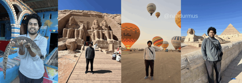2 haftalık Mısır gezimde insanlara çok fazla güvenmem gerektiğini öğrendim ve tarihi yerleri gezerek hayallerimden bir tanesini daha tamamladım. Piramitleri görmek ve ilk sıcak hava balonu deneyimimi yaşadım. Kapadokya’da sattıklarının 4’te biri fiyatına hemde.